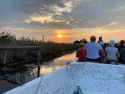 Accompagnati da una guida ambientale possiamo passeggiare sugli argini, avvolti dai caldi colori del tramonto.